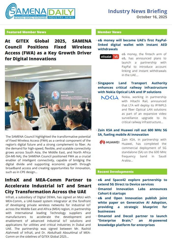 At GITEX Global 2025, SAMENA Council Positions Fixed Wireless Access (FWA) as a Key Growth Driver for Digital Innovations
