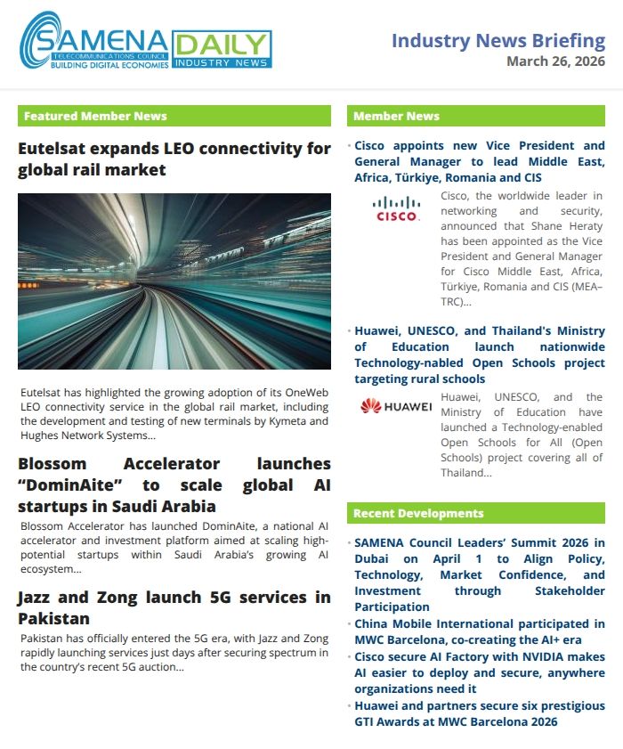 The SAMENA Telecommunications Council has confirmed that its Leaders' Summit 2026 will take place as scheduled on April 1st at Atlantis The Palm, Dubai, under the patronage of the Telecommunications and Digital Government Regulatory Authority and in collaboration with Huawei. Positioned as the first regional leadership dialogue following Eid... read more