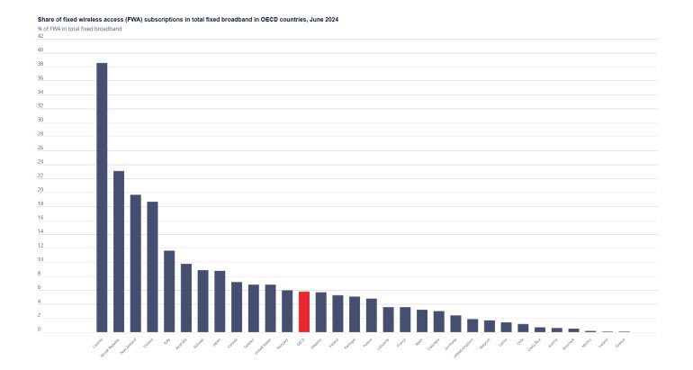 According to the latest OECD data, fixed wireless access (FWA) subscriptions grew by 17% from June 2023 to June 2024. Hungary (71%), the United States...