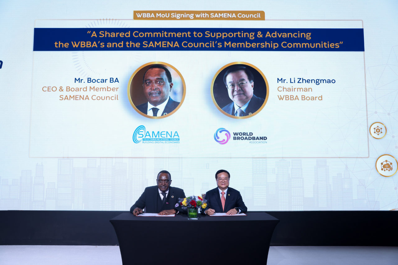 The MoU was signed by the WBBA’s Chairman of the Board, Dr. Li Zhengmao, and SAMENA Council’s CEO & Board Member, Bocar BA, during the SAMENA Council Leaders’ Summit 2025. The MoU represents a statement of shared intent, reflecting the Parties' commitment to long-term engagement and coordinated action, while acknowledging its non-binding nature. As part of the agreement, the two organizations will also promote each other’s initiatives through mutual visibility in publications, digital platforms, and participation in industry activities. The MoU allows for future expansion of the partnership through supplementary agreements for specific joint projects or events. The MoU signing was followed by both trade associations co-chairing a broadband roundtable during the SAMENA Council Leaders’ Summit 2025, titled “Smarter Broadband: Investment. Innovation. Intelligence.”