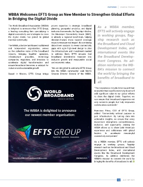 The World Broadband Association (WBBA) proven expertise in strategic broadband As a WBBA member,