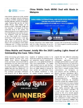 At the 21st Leading Lights Awards, China migration of traditional services to the projects that have delivered outstanding