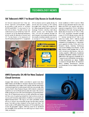 by providing a pilot service to introduce bus public Wi-Fi rollout. SKT began the pi- Mbps with Wi-Fi 6/6E, speeds with Wi-Fi 7