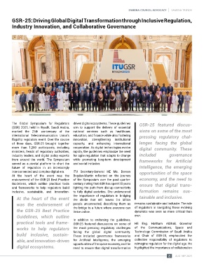 build inclusive, sustain- facing the global digital community. and Chair of GSR-25, emphasized the