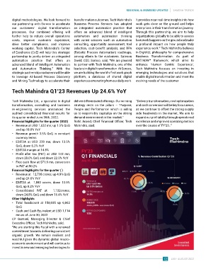 working capital. Tech Mahindra’s Center selection, cost-benefit analysis, and RPA experience work.” Tech Mahindra believes