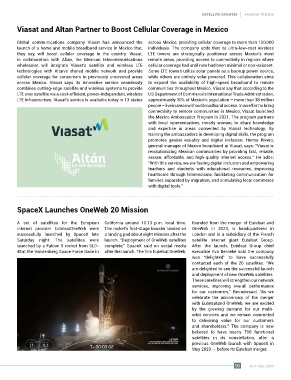 Global communications company Viasat has announced the across Mexico, providing cellular coverage to more than 150,000
